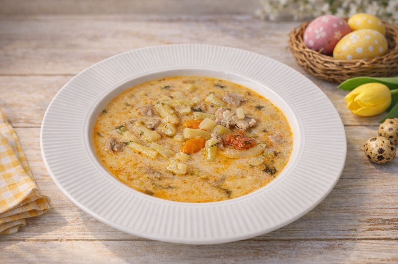 A sertéshúsból készült eredeti palócleves a magyar konyha egyik legismertebb tartalmas levese. Bár sokan inkább nyári fogásként ismerik, a kapros palócleves húsvéti levesként is remek választás, hiszen könnyű, mégis laktató. A puha sertéshús, a zöldbab, a krumpli és a tejfölös alap együtt igazán harmonikus ízt ad a levesnek, amit a kapor frissessége tesz teljessé.
